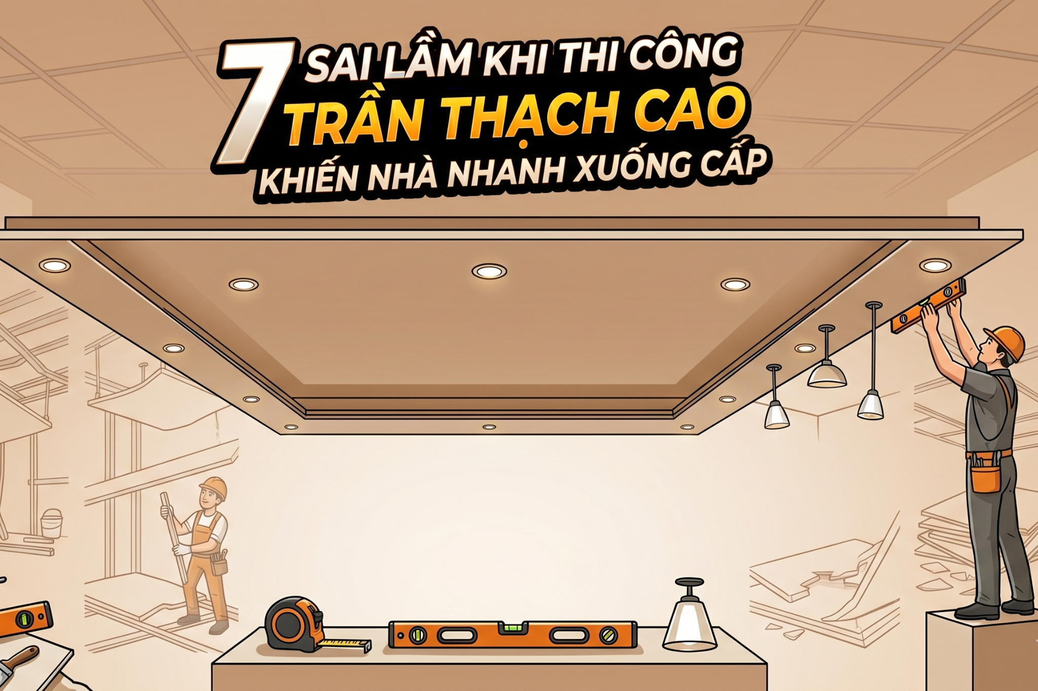 Thi công trần thạch cao không đơn giản chỉ là lắp khung và bắn tấm. Đây là hạng mục đòi hỏi: