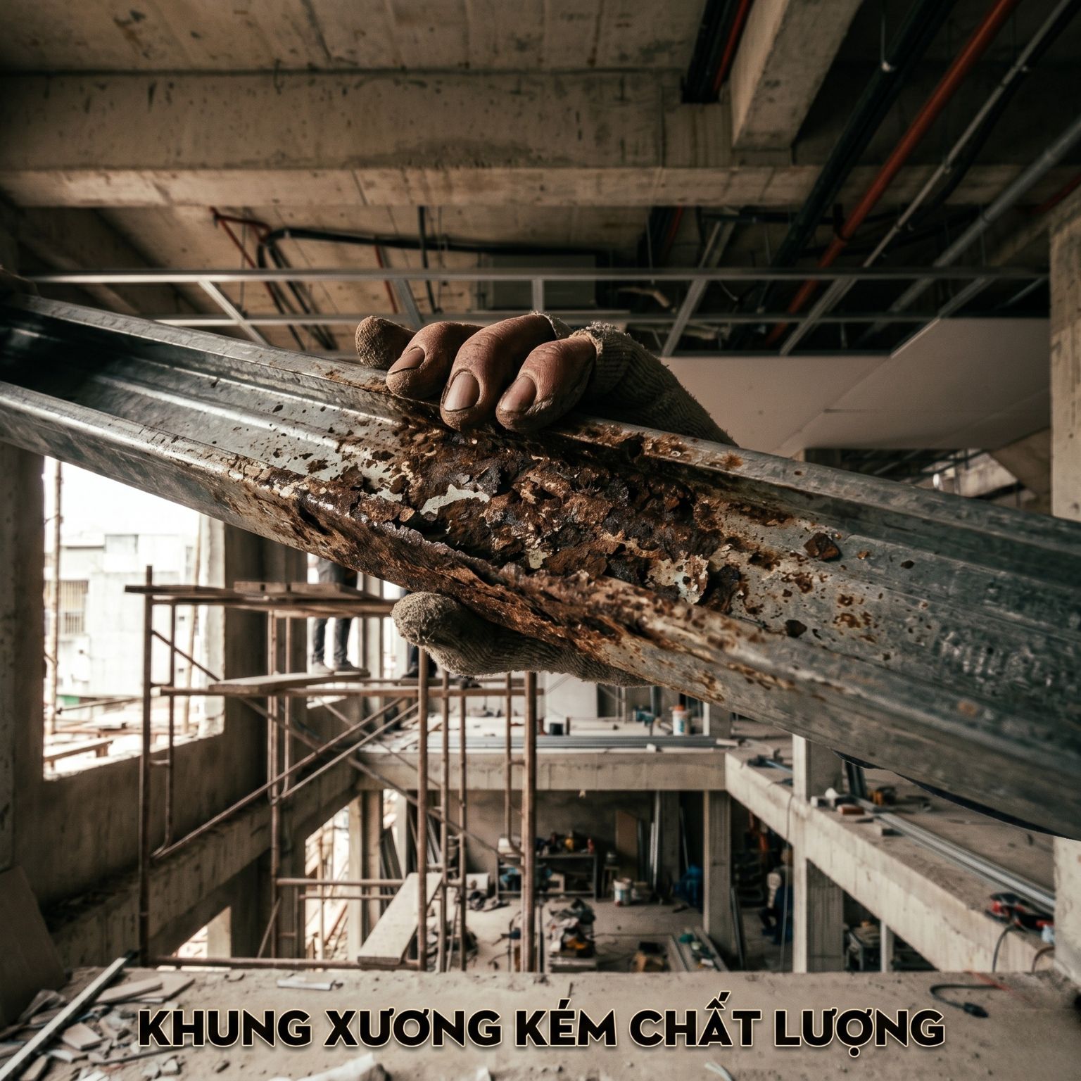 Khung xương là “bộ xương sống” của trần thạch cao. Việc dùng vật tư giá rẻ, không đạt tiêu chuẩn sẽ gây: