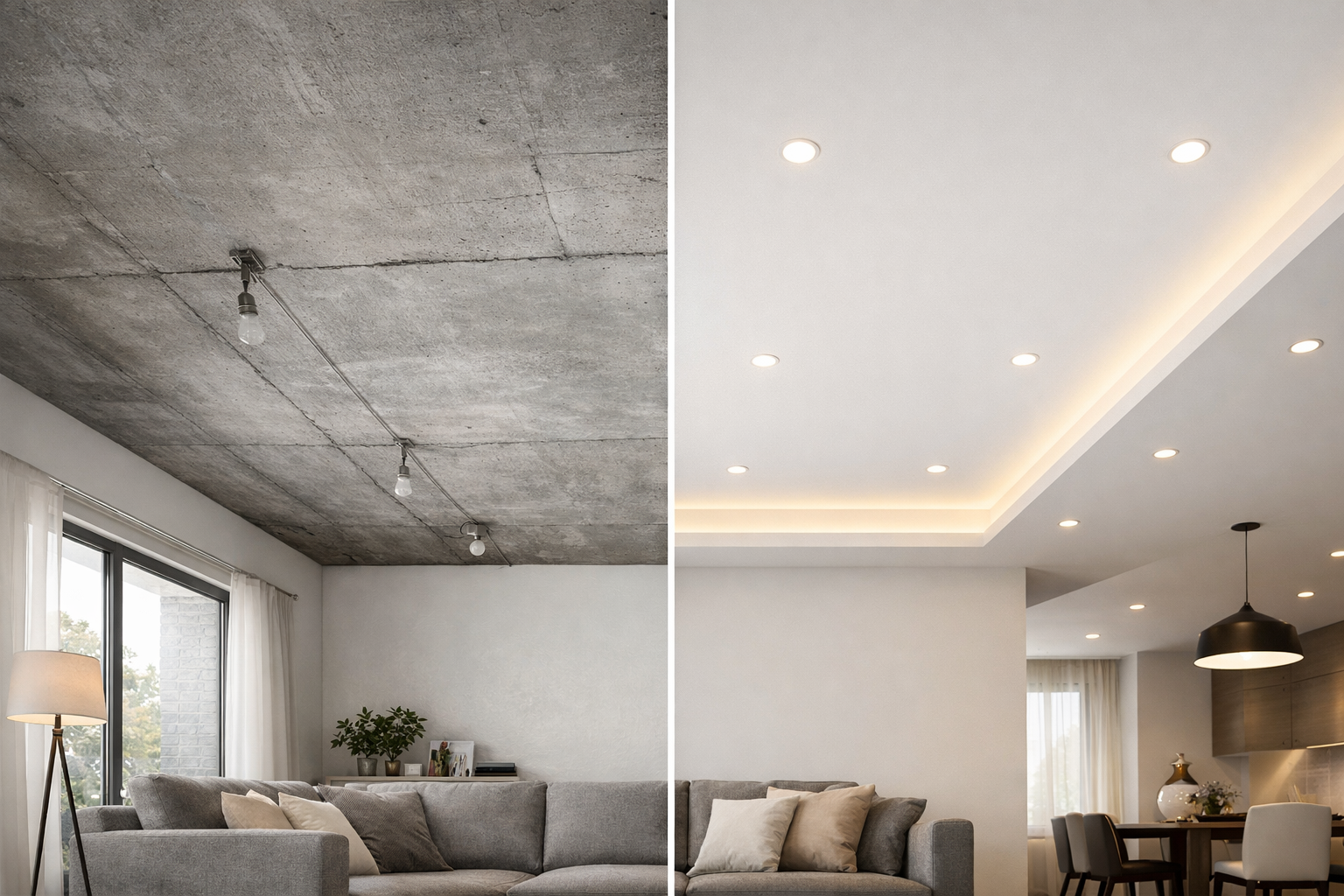 Chúng tôi không làm trần theo “mẫu rập khuôn”, mà thiết kế trần phù hợp với chính ngôi nhà của bạn. Trần thạch cao không xấu – chỉ xấu khi làm sai cách. Nếu được thiết kế và thi công đúng, trần thạch cao: