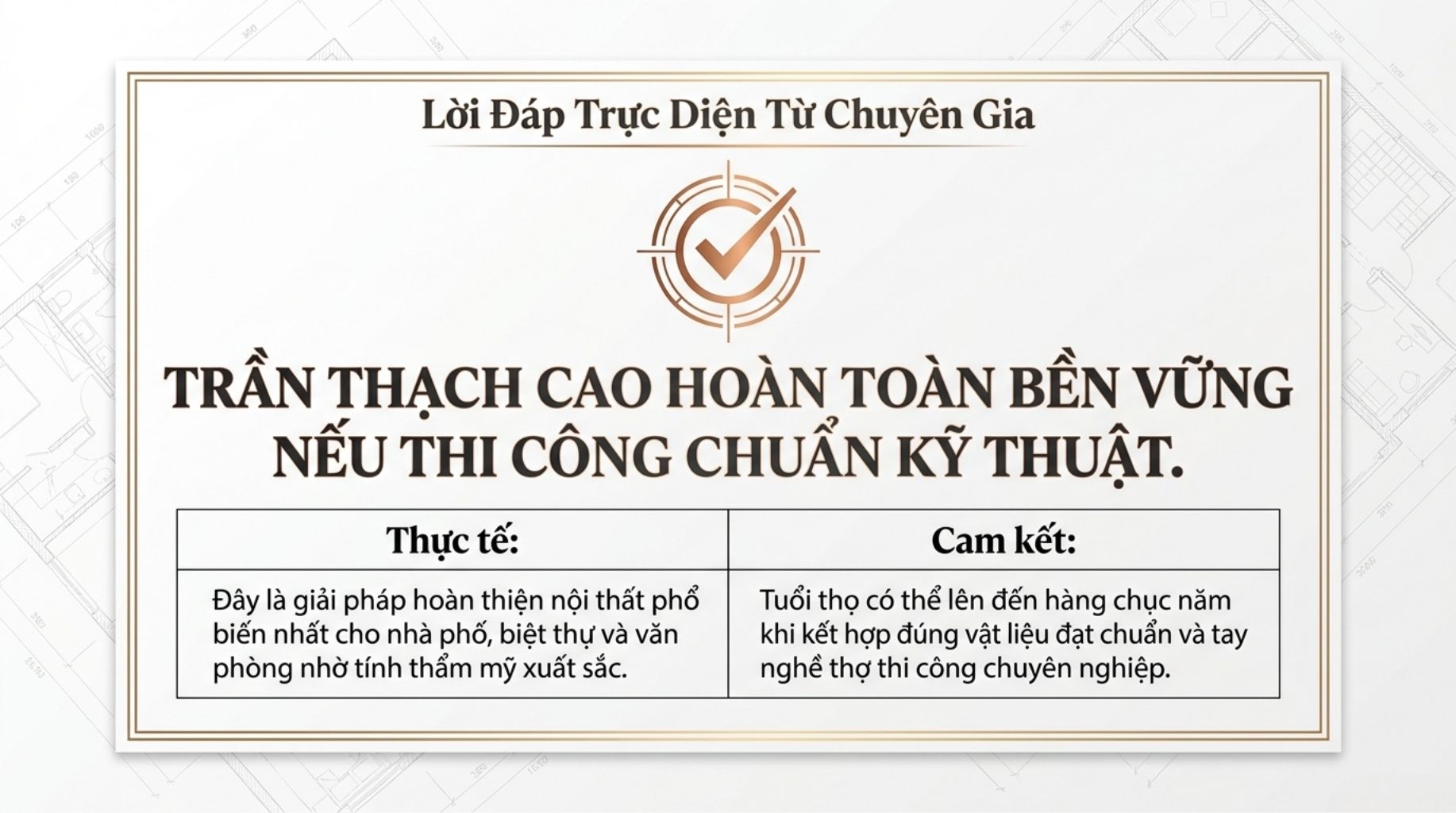 Trần Thạch Cao Có Bền Không? Bao Lâu Phải Sửa? Giải Đáp Chi Tiết Từ Chuyên Gia